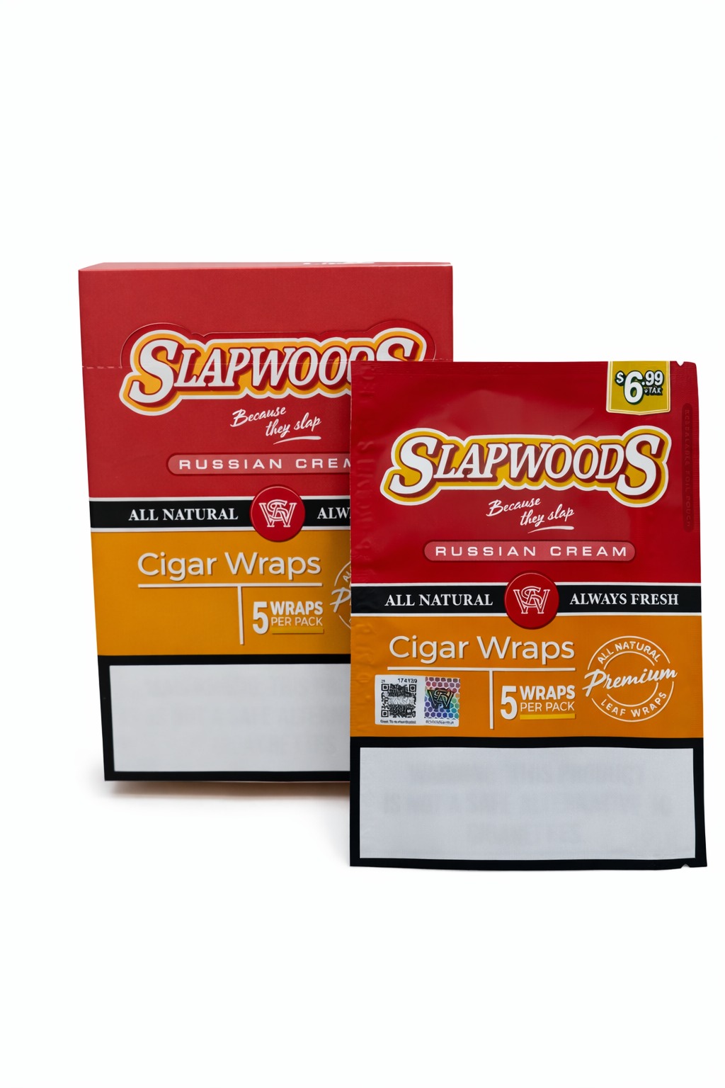 Premium only products for premium only smokers. Slapwoods Russian Cream wraps are crafted from the finest virgin, all-natural tobacco leaves. Pre-washed and hand-cut to ensure a stem-free edge, these wraps provide a luxury smoking experience with a smooth, creamy finish. Designed for those who refuse to compromise on quality.