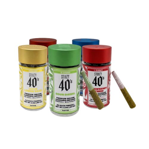 Next-level potency in every spark. The STIIIZY 40s sets the gold standard for infused pre-rolls, featuring premium indoor-grown flower infused with high-potency Live Resin and dusted in a thick coating of Kief. Testing at over 40% THC, these 0.5g joints are designed for a smooth, flavor-packed inhale and a heavy, long-lasting high.
